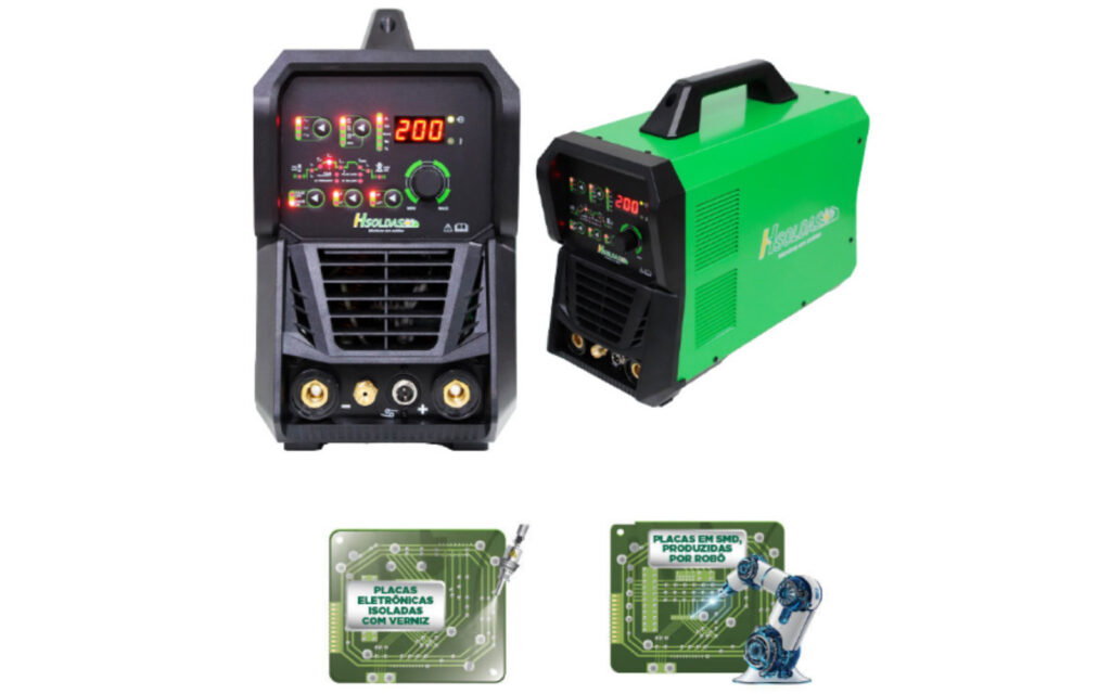 - Possibilita soldagem de alumínio (AC) e aço inox (DC) e demais ligas