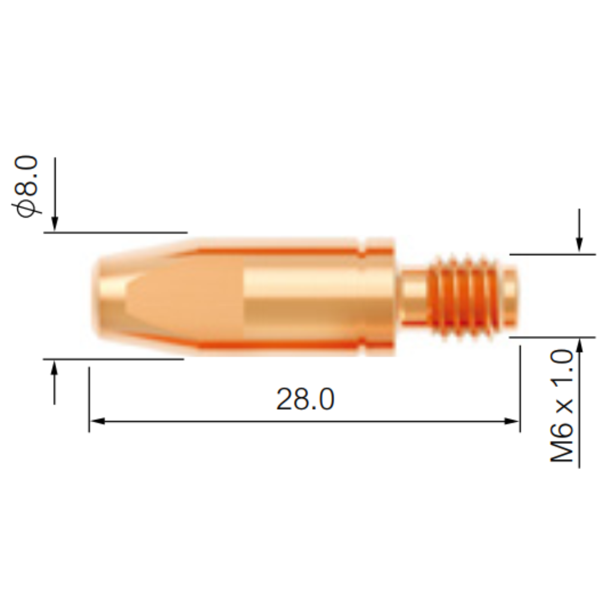 Bico de Contato para Tocha MIG M6 X 28MM X 0,9MM CUCRZR