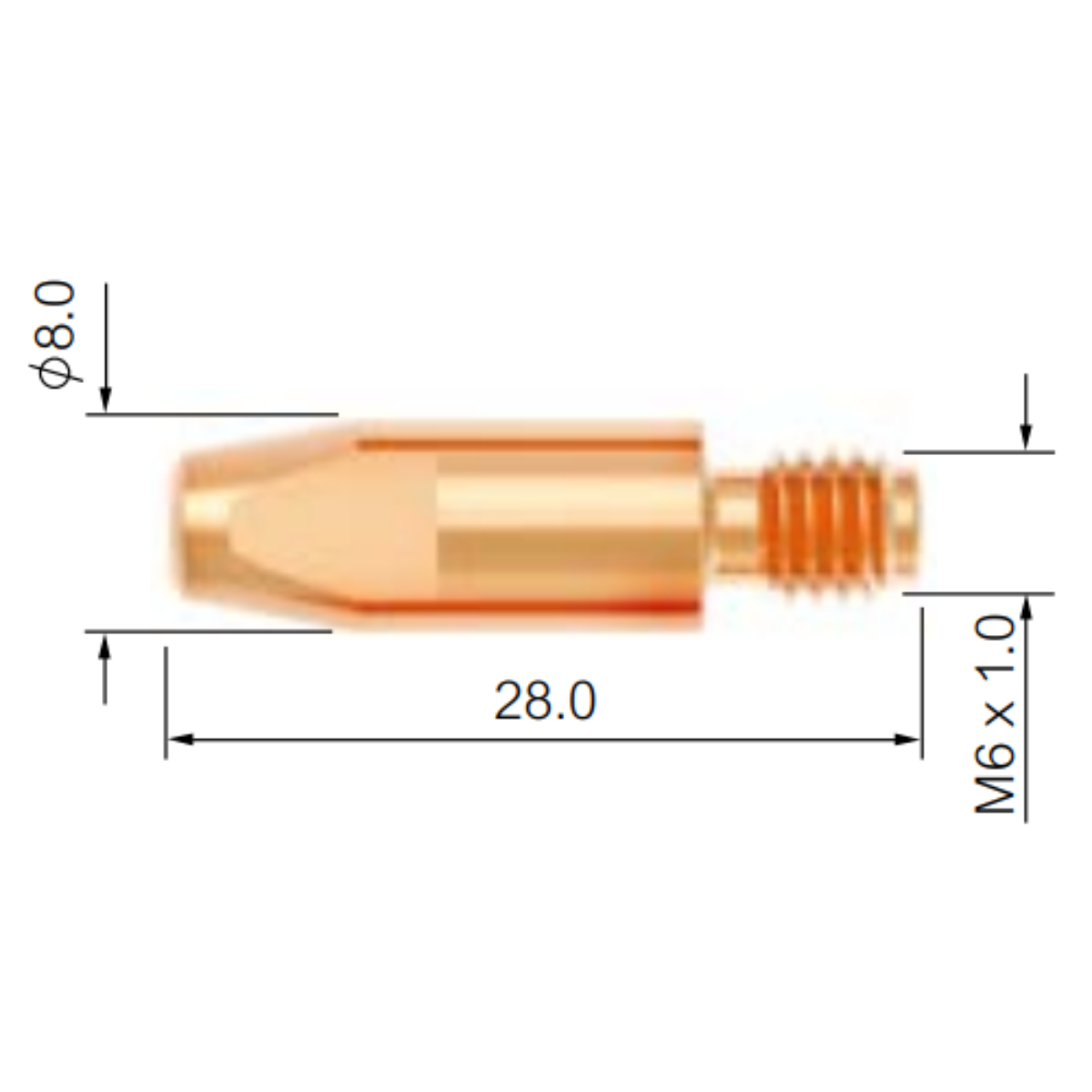 Bico de Contato para Tocha MIG M6 X 28MM X 1,0MM