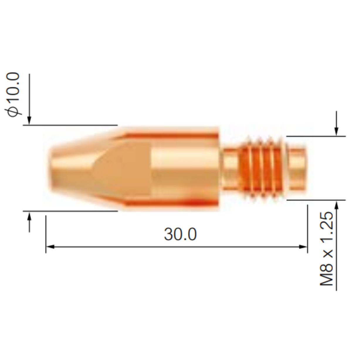 Bico de Contato para Tocha MIG M8 X 1,2MM X 30MM
